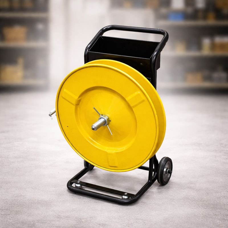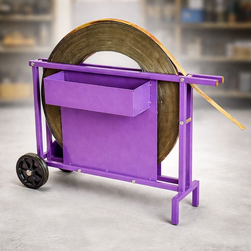 Los carros devanadores permiten mantener los rollos de fleje ordenados y accesibles, lo que facilita la gestión del inventario, reduce el desorden y mejora los tiempos de preparación en procesos de flejado manual o semiautomático.